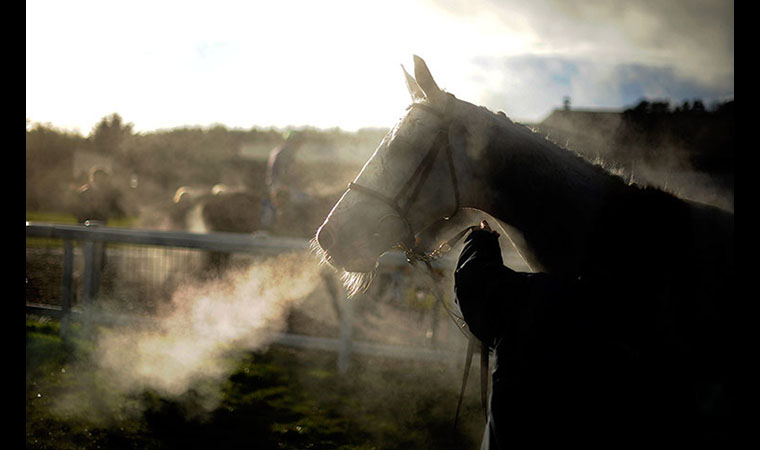 | 在埃克塞特郡赛马场完成赛程的这匹马在呼吸急速的喘气。 |