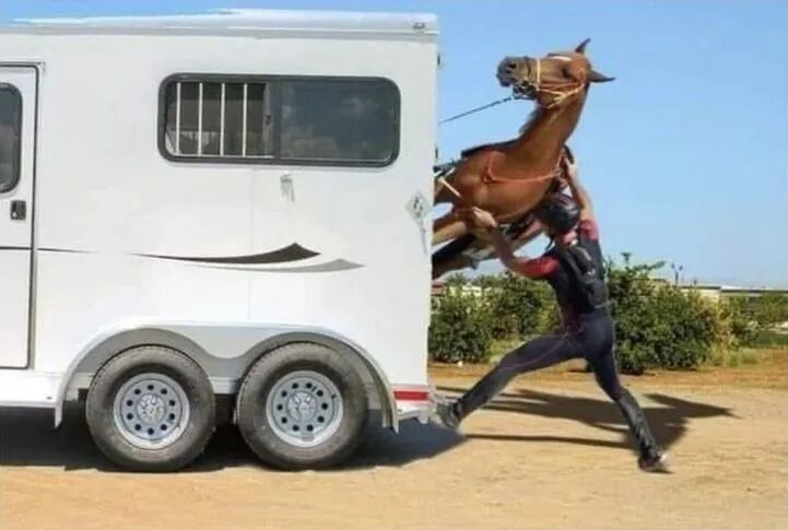 有些马非常不愿意进入拉马车,装车的过程很容易变成一场混乱的“拉锯战”,最后要靠前拉后赶、大吵大叫一番才能让马上车,而那些马也会因此被贴上“脾气不好””固执““胆小”的标签。 图|那个坡道看起来跟岩浆似的! 但如果有一个办法,可以让任何马愿意进入拉马车,你会想试试吗? 图|一个有点奇怪,但可以在1分钟之内把马装上车的办法 (不是要介绍这个) 首先我们要搞清楚: 马为什么会怕拉马车? 作为被捕食者,马有“战或逃”反应,它们喜欢呆在大而开放的空间里,因为在那里它们很容易看到捕食者接近,可以快速逃跑。 而你永远不会看到被捕食者在狭窄的空间里休息,如果捕食者出现,它们很容易被困住,走投无路。拉马车内正是这样一个会让马感到被困住的空间。 马对于任何不存在于马房或放牧场中的物体都很警惕,也特别讨厌会移动和发出噪音的物体。 这就是为什么马通常都不喜欢,甚至害怕拉马车。 站在马的角度来看,走上拖车可能是一种痛苦,尤其是在马不明白拖车到底会不会伤害它的时候。 如何将马带上拉马车: 教学开始 适应拉马车的存在 首先确保你的马在拉马车附近感到舒适,如果它感到不舒适、不自在的话,它就不会想进去。 找到一个马能放松下来的距离,从那里开始,面向拉马车,一边让马在你身前从一侧走到另一侧(后文统称为“发送练习”),一边慢慢靠近拉马车。最后,保持在离拉马车差不多两米的距离,继续让马从你身前走。 一定要在拉马车的三侧(两侧和后方)都进行发送练习,因为很多马会在你牵它上车的过程中,逃到车的侧面,以此来逃避上车。通过这个练习可以让马明白,无论它朝哪里走,你都能控制它的方向。 三侧的练习都结束后,可以检验一下成果。请你背靠着拉马车的后部,不移动双脚,仅通过牵引绳的动作,让马从车的一侧走到另一侧。必要时可用调教鞭辅助。 Tips 一切表现得越自然越好,就好像你们只是在进行日常训练,而旁边刚好有一辆拉马车。这样马就能越快越专注于训练。 适应坡道 这一步是为了帮助马适应它走上拖车时听到的噪音以及它脚下的运动。 如果你跳过这一步,直接让马踏上拖车,当它第一次听到这种声音并感觉到拖车在它脚下移动时,它会惊慌失措。 在马的脑海中,当你把它装上拖车时,你就是在把它带进一个狭窄、黑暗的洞穴。所以,千万不要让上车这件本身已经很可怕的事情变得更可怕。 在降下坡道时,如果这匹马之前对于上车有过不好的经历,那它可能会开始紧张,并怀疑接下来的动作。 这个时候你要做的就是让它适当走动,让它将注意力集中到你身上。 随后,让马从一侧踏上坡道,只需要一两步即可。一旦它成功地迈出了一两步,就不要再强迫它前进,而是带它转身离开坡道。 接下来进行多次尝试,让它走上坡道,每次都看看是否能让它多迈一步,再多迈一步。 最后,你希望它能绕着你朝一个方向走一个小圈,就像平时打圈一样,不过有一部分是在坡道上进行的。保持同一方向,是为了先让它单侧的大脑适应这项工作。 为了避开坡道,有些马可能会撞到你身上,甚至企图把你挤走。 注意,如果你看到你的马侵入你的空间,请举起马鞭来挡住自己,并在必要时将马赶出你的空间。 如果你不懂得保护自己的空间,而是在它向你走来时给他让路,那么它就会觉得它可以通过挤开你来避免站上坡道。 对于马来说,谁先让步,谁就输了,不要做让步的那一方! Tips 一开始,马可能会冲过坡道,因为那是它下意识的举动。但多尝试几次后,它就会获得信心,并放慢速度,开始思考。多给它点时间! 每当马想停下来嗅闻坡道或是用前蹄轻刨坡道时,放手让它做吧,这是它自己的安检方式。 它必须150%确认这辆车不是来抓它的,是安全的,否则你无论如何也说服不了它上车。 当马在坡道上停住,放松休息时,你可以轻轻给它按摩,这样它会意识到,当他站在坡道上时,它可以休息和放松,而当它走下坡道后,它就要工作了。 |