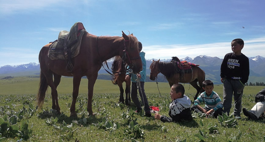 学校让我教音乐和体育。我还记得那群大眼睛的俄罗斯族娃娃们跟着我高声唱“白龙马,蹄儿朝西”的情景。后来天变暖了,我进了牧区,住到了蒙古人家里,以工换宿。