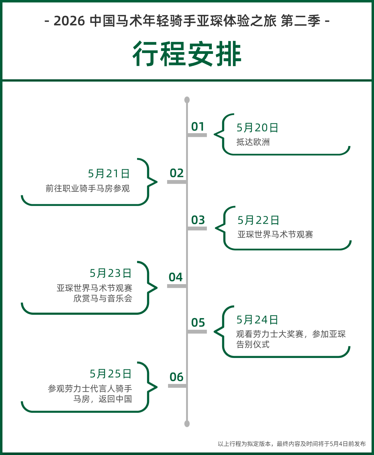 能够在2026年5月20日~5月25日期间,前往德国亚琛参与活动,全身心投入这场马术之旅;