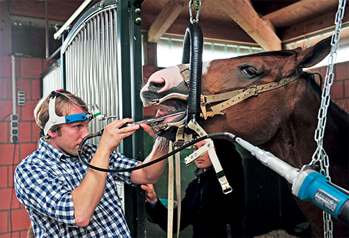 特别鸣谢笔者的两位牙医朋友,感谢他们为本文做顾问: 荷兰牙科马兽医 Christie 女士 比利时牙科马兽医 Stijn 先生 作者:彭煜师 马兽医 中国农业大学 动物医学临床硕士 前往比利时接受培训后,与比利时马匹肢蹄病专家 Sigert、繁育专家 Celine 组成乐驰马医疗兽医团队 Q: 医生,为什么我的马需要挫牙? A: 首先,马作为草食动物,在进食时需要长时间的进行咀嚼,经过精细研磨的草料进入胃肠道后,营养才能够被充分吸收。如果马的牙齿不好就会导致咀嚼不完全,没有经过充分研磨的草料就不能被充分消化吸收,这样就会导致严重的后果,如马匹营养不良、结症以及腹痛。 另外,我们咀嚼的时候牙齿是“嘎吱”“嘎吱”的上下运动,而马儿的臼齿在咀嚼的时候是水平运动,像个研磨机一样把草料给慢慢磨碎。马的上颌是要宽于下颌的。生长结构和咀嚼运动的特殊性使得马匹上颌的臼齿外侧缘比内侧缘要长且锋利,很容易就会伤到口腔。而下颌的臼齿则相反,内侧缘会更长更尖,容易伤到舌头。 通过定期的口腔检查和挫牙,兽医会将马的臼齿打磨平整,这样既能保护马儿的口腔和舌头,又能保证马的咀嚼能力。 Q:挫牙的时候马儿疼不疼啊? A:马的牙齿表面没有任何神经,所以当医生们“吭哧吭哧”地给马儿挫牙的时候,虽然你看着很疼,但马儿实际上是不疼的。 Q:挫牙会对我的马造成伤害吗? A:当马匹配合牙医的操作时,是不会对马造成伤害的。偶尔会碰到黏膜有少量出血的时候,用生理盐水冲洗即可。但如果马儿不配合,那我们就要用到镇静药了,让它在迷迷糊糊中完成挫牙,以免伤到自己。个别马匹在挫完牙后可能会不适应,会出现两三天饭量减少的情况,注意观察,在它适应后就会恢复正常食量。 这匹马由于上下颌臼齿不对齐,突出的前臼齿和臼齿长得很长,已经损伤口腔造成溃疡了。 Q:但是我不想我的马儿用镇静药,怕对它身体不好。 A:要想进行彻底的口腔检查和治疗,使用镇静药是很必要的,是避免对马儿造成伤害最好的方法。只要马匹身体健康,合理使用镇静药并不会对它产生伤害。当然,对于年老体弱的马匹,兽医会调整镇静药的使用方案,尽量减少镇静药带来的风险。 Q:我的马还小,才 3 岁,几岁给它挫牙合适呢 ? A:决定马匹需不需要挫牙的不是年龄,而是它牙齿的情况。即使是两三岁的马,也有可能有很多牙齿问题。草料的比例、干草的质量、马匹的个体差异和它们的行为习惯都会影响到马牙齿的状况。所以,每年至少一次的兽医口腔检查是很有必要的。兽医会根据马匹牙齿的情况建议其是否需要立即挫牙,以及多久挫一次比较合适。 马匹的牙齿随着年龄的变化会呈现出不同的特点。有个成语叫“马齿徒增”,大家可以试试看能不能根据马牙齿的数量看出马儿的岁数。但事实上,由于每匹马都存在个体差异,根据牙齿的特征变化往往是不能准确判断马匹年龄的。 Q:我聘请的兽医怎么才给它挫了十五分钟呢?怎么着也得挫个四十分钟才够本吧? A:在马匹牙齿状况非常不好、有很多需要修正的地方,而且兽医使用的是手工挫牙工具时,的确可能要工作 40 分钟甚至更久。但一般情况下,熟练的兽医在十几分钟内足以完成挫牙的任务。使用电动挫牙机会大大提高效率哦。 Q:到底用电动的挫牙机好还是手动挫牙好? A:这个问题前段时间曾引起过很大争议。通过微信的宣传,一些马主深信电动挫牙对马不好,坚持让兽医手动挫牙。很多兽医也通过微信表达了反对这种说法的立场。那到底哪种方法更好?在这里,我很负责任的告诉你,电动挫牙并不比手动挫牙差。就像洗衣服是用机洗好还是手洗好?粽子咸的好吃还是甜的好吃?豆腐脑是吃带卤的爽还是加桂花蜜的香?类似这种问题,不同的人心中会有不同的答案。 挫牙也是一样,国外挫牙师不允许使用镇静药,他们往往更倾向于手动挫牙,因为声音比电动的小,马更容易接受。而职业马兽医则更倾向于选择电动挫牙,因为可变换功率的电动挫牙机可以更彻底的修正马的牙齿,特别是在挫靠后的臼齿时,留给手动挫牙工具来回移动的空间并不多,某些角度很难进行彻底的修整。 不同地区的传统也不一样,来自南半球新西兰和澳大利亚的挫牙师更倾向于选择手动挫牙。而欧美的兽医和挫牙师都喜欢用电动的。 Q:手动挫牙由于动作幅度大更容易损伤口腔黏膜还会有导致撕裂伤的可能? A: 只要挫牙师小心操作,很少会导致撕裂伤,而口腔黏膜的轻微损伤并不会导致严重的后果。 Q: 电动挫牙产热快会损伤牙齿和牙龈? A: 挫牙机的转速不够快,不在同一部位停留过久,每隔几分钟将牙挫置于水中冷却散热,就完全可以避免这个伤害。 Q: 电动挫牙噪音会使马厌恶挫牙? A:不喜欢挫牙的马,不管是手动的还是电动的它都不喜欢。的确,电动挫牙的噪音会比较大,但习惯了电动挫牙的马会知道即将发生的事情,它们是能安然接受的。 Q:那一年挫多少次合适呢? A:一般挫牙的频率是每年一到两次,视马牙齿的情况而定。 Q:是不是应该找国外的牙医,只有他们才能干好这个活儿? A:并不是的。给马挫牙是一个很常规的牙齿护理操作,就和人去洗牙一样。普通的牙医只要工作细致,就可以把这个活干得很好。不管是国外还是国内的马兽医,只要他们受过培训、有合适的工具、干活认真仔细就没有问题。 事实上在国外,能给马挫牙的除了专科马牙医(Equine veterinary 