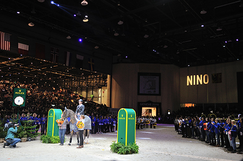 有人说“日内瓦不属于瑞士”,因为这里集中了二百余个在国际上举足轻重的机构,如联合国欧洲总部、世界贸易组织、国际红十字会总部等;日内瓦也是世界各国游客云集的地方,自从加尔文宗教改革以来,日内瓦成了反对旧体制的人避难的场所,伏尔泰、拜伦,还有列宁等人,为了寻求和平的环境都曾来到这座城市。这里的确十分国际化,虽然面积袖珍,却仿佛蕴藏着无限可能,无论是经济、文化,甚至一场马术赛事都是如此。《马术》杂志作为媒体中的一员、也是中国唯一一家受邀媒体,很荣幸能来到日内瓦国际马术节进行报道。关于在几天来日内瓦带给我的震撼与感动,我想以飞往日内瓦途中,宣传片里惊艳到我的那一句话来概括,“Imagine the city, which brings the world to you. 想象这座城市,把世界呈现给你。” “最佳室内比赛”的超强吸引力 刚下飞机,马友晶姐(她的女儿安安从小学习马术)驱车来接,帮我们安顿住所,听到我们想参观马场的想法,不无遗憾地说:“马场的课程都顺延了,因为所有的教练都在比赛现场(参赛或观赛)。”国际大赛的吸引力不凡,PALEXPO 赛场中的赛况调动着所有日内瓦马术爱好者,甚至是来自法、德等国爱好者们的情绪。 日内瓦国际马术节(CHI Geneva)创办于1926年,今年是其成立的90周年,也是第56次办赛于此。马术节曾八次被评为“最佳室内比赛”,它也是劳力士场地障碍赛大满贯三个最重大赛事的年度最后一站。赛事共为期4天,比赛项目多样化,包括场地障碍赛、盛装舞步赛、驾车赛和室内越野赛。来自全球20个不同国家的近110名优秀骑手因为马术节汇聚一堂。世界上排名前 30 名的骑手们几乎都来到现场,共同呈现这场最高规格的马术赛事。 在这其中有在奥运赛场上中获得奖牌的骑手,如瑞士骑手史蒂夫·戈尔达(2012 年夺冠)、加拿大人艾瑞克·拉玛兹(2008 年夺冠)、荷兰人杰伦·迪伯尔丹(2000 年夺冠),还有来自瑞典的 2008 年奥运会银牌得主 RolfGöran Bengtsson、 美 国 人 Mclain Ward 和 德 国 骑 手Marcus Ehning,他们曾分别在 2004 和 2000 年奥运会上获得团体金牌。除此之外,当今世界排名第一的德国骑手克里斯蒂安·阿尔曼、第三的肯特·法灵顿和梅瑞狄斯·比尔鲍姆等优秀骑手都悉数到场。 作为一场五星级马术赛事,除比赛外,在举办场地日内瓦 PALEXPO 会展中心还有各大马具、科技新品、马工艺品等展商来此参展。整个赛场加展厅占地面积为 5200平米,展商部分其实和我们在新国展看到的“北京国际马展”面积相距不大,但在日内瓦马术节,参观者们的感受却说明了展商的质量:虽然展览不大,但每一个展商都各具特色,绝不多余,他们纷纷将精品带到现场,让人逛完展厅还意犹未尽。 障碍十强,王者对决 2016 年 12 月 9 日晚上的日内瓦 Palexpo 会场摩肩接踵,人们从四面八方赶来只为一场爱马人都翘首以盼的顶尖赛事——第 16 届劳力士国际骑师俱乐部 10 强赛(THE ROLEX IJRC TOP 10 FINAL)。十强赛汇聚马术场地障碍赛最佳阵容,只邀请 FEI 年度骑手排行榜上的前十位骑手参赛。对有资格参赛的骑手和马匹而言,这不仅是一个争夺年终霸权的机会,更相当于对骑手最好的认证和奖励。 而对于普通观众来说,在一场比赛中能欣赏世界排名前十的骑手的实力炫技,这本身就是难得的机会。难怪能容纳八千多人的场馆座无虚席、人头攒动,体现着马术运动在这个城市的巨大影响力。 这场全世界最高等级的场地障碍赛事,十对人马组合在这一重量级赛场上用马术精神闪耀日内瓦。于此同时,十强赛的举办也宣告着 12 月 8 日起至 11 日,本年度最后一场马术盛会——第 56 届日内瓦国际马术节(CHI Geneva)已经在瑞士日内瓦 PALEXPO 会展中心盛大开幕。 由于比赛的规则是二轮比赛决胜负,因此在首轮比赛中,十强选手均以顺利通过比赛为第一要务,保存实力,只要不打杆,用时长短反而暂居次要战略。 首先出场的便是 FEI 骑手排行榜的第十位骑手,史蒂夫·戈尔达(Steve Guerdat)。这位瑞士本土的骑手还没出场便受到了明星般的欢迎——所有观众都在为之鼓掌,远处还有“粉丝团”挥舞瑞士国旗尖叫助阵。戈尔达不负众望,以零罚分、62.33 秒的成绩顺利完赛。然而接下来出场的,在障碍赛场上颇具威名的劳力士大满贯得主斯考特·布拉什(Scott Brash)却遗憾打落一杆,无缘奖台。随后参赛的本场比赛唯一的女骑手 Penelope Leprevost 和法国骑手凯文·斯多特(Kevin Staut)均以零罚分完赛,他们以及之后皆以零罚分完赛的艾瑞克·拉玛兹(Eric Lamaze)和克里斯蒂安·阿尔曼(Christian Alhmann)共五位骑手,均成功晋级,精彩表现为第二轮比赛增加了悬念。 随着两轮比赛间隙盛装舞步骑手颁奖环节的结束,万众期待的十强赛最终决赛终于打响。第二轮比赛以第一轮排名倒序进行,因此在第一轮罚分选手完赛后,紧张的争夺便在第一轮零罚分的五位骑手当中展现。顶尖高手们不再遮掩实力,锋芒毕露。一对对人马组合如离弦之箭,蓄势待发,当开赛铃声“叮”的响起,就要摒除一切杂念,在冷静自持中与时间赛跑。跃障之时,不仅考验骑手自身的心理素质,在紧张之处,现场观众更是屏息握拳,如果看到打杆后似落非落的“危险”场景,还会忍不住惊呼出声;如若有骑手以行云流水般的律动成功突围,坐席上紧张的观众便会如松口气般,相视一笑,或起立鼓掌。 第二轮比赛的路线设计极具挑战性,有两个需要急转接近360 度