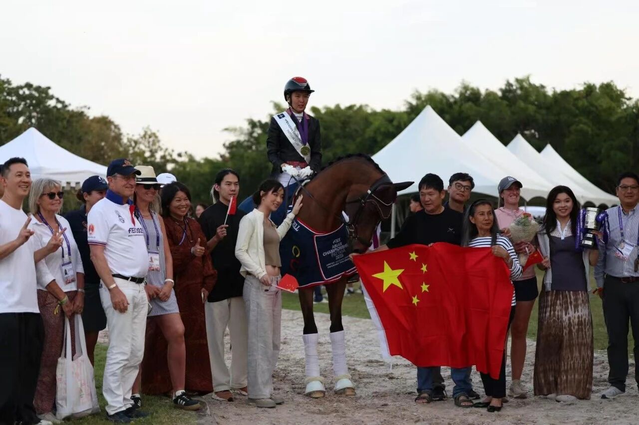 中国骑手饶嘉怡斩获2025亚锦赛盛装舞步第一中级个人冠军