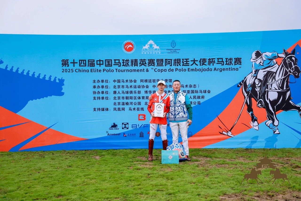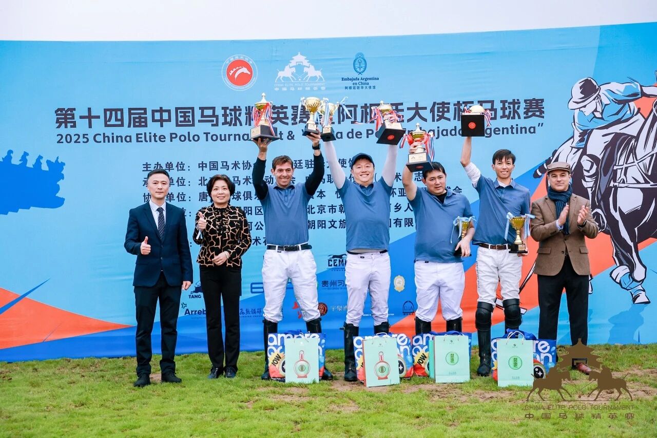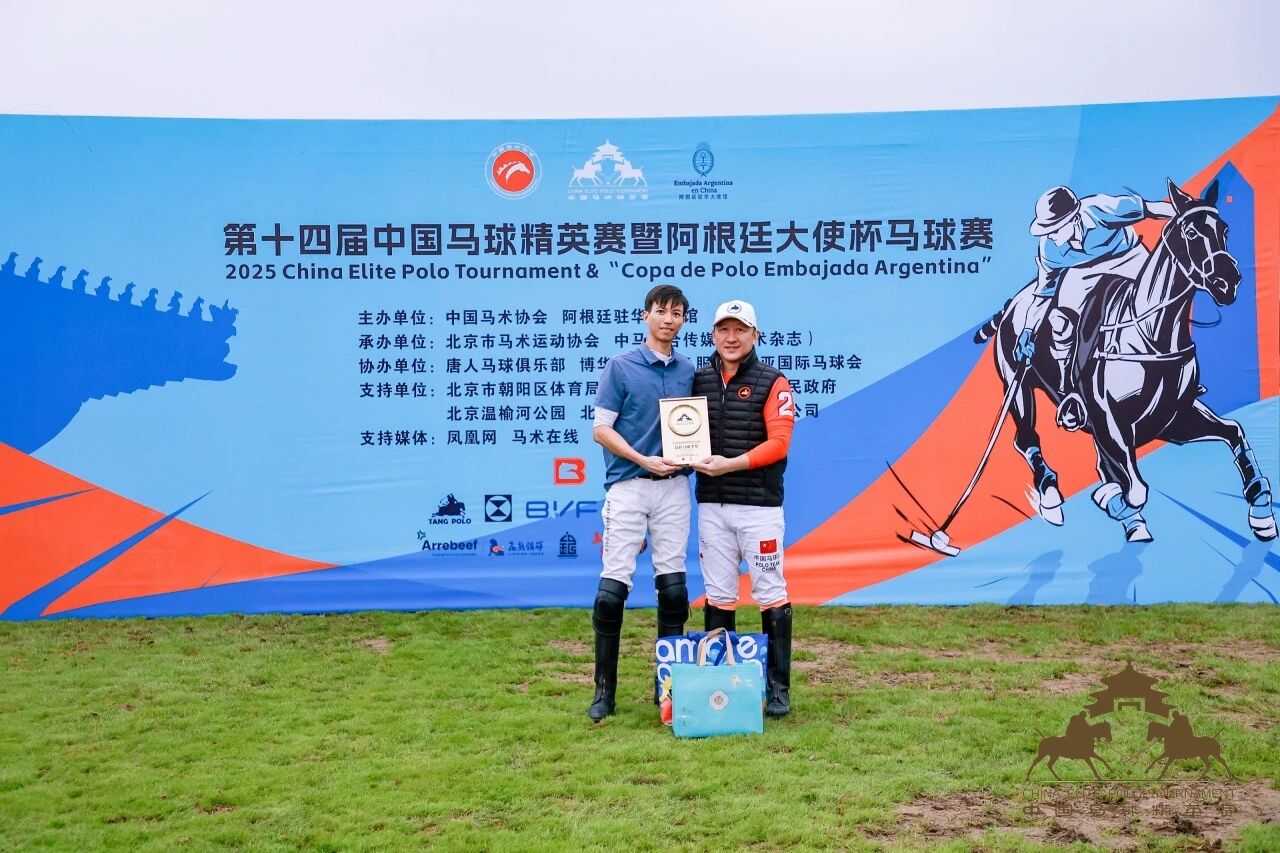 金秋十月,草色丰美,为期两天的第十四届中国马球精英赛暨阿根廷大使杯马球赛,于10月18日在地处北京温榆河公园的北京市马术运动协会马球赛事中心圆满收官。 经过两天四场比赛的角逐,最终博华队将冠军收入囊中,唐人队荣获优胜奖,天津环亚队和快鱼队获得纪念奖。唐人队的刘书瀚收获最佳新人奖项,博华队的润锴(Rooney)荣获本届比赛最佳马球手,最佳马匹奖由唐人队的马匹“Nochera”获得。 第十四届中国马球精英赛 暨阿根廷大使杯马球赛 主办单位 中国马术协会、阿根廷驻华大使馆 承办单位 北京市马术运动协会、中马联合传媒(马术杂志) 协办单位 唐人马球俱乐部、博华资本 快鱼服饰、环亚国际马球会 支持单位 北京市朝阳区体育局 北京市朝阳区孙河乡人民政府 北京朝阳文旅发展集团有限公司 北京温榆河公园 合作伙伴 利星行汽车、贵州习酒 赞助支持 宇泉酒窖、飞熊领鲜、Arre牛肉、 邯郸银瓷天成、禾木冰川水、 昭通上贝苹果汁、中国参廣裕號、驿乐马术 支持媒体 凤凰网、马术在线 赛事吸引了众多领导嘉宾莅临现场,共同见证这一激动人心的时刻。 出席的领导和嘉宾包括:阿根廷驻华大使马致远先生、国家体育总局自行车击剑运动管理中心副主任王峻燕女士、中国马术协会秘书长钟国伟先生、北京市朝阳区孙河乡党委书记张继明先生、利星行汽车业务战略及高端车部执行总监陶达利先生和贵州习酒销售有限责任公司北京区副总经理田景菊女士等。 中国马术协会秘书长钟国伟在开幕致辞中表示:2025年中国马球精英赛暨阿根廷大使杯马球赛在温榆河公园马球赛事中心举办,这既是马球运动践行“健康中国”战略、推动体育事业高质量发展的一次生动实践,也是中阿体育人文交流的一项重要活动。 这场赛事,不仅是马球运动激情与技巧的对决,更是以体育为桥、以文化为纽带的中阿交流新舞台。我们期待,中阿友谊在骏马飞驰的赛场间持续升温,在呐喊与喝彩里为两国体育人文交流写下崭新的注脚! 阿根廷驻华大使马致远在开幕致辞中表示:感谢中国马术协会对赛事的鼎力支持,特别感谢钟国伟先生、刘诗来先生、李艳阳先生和刘楠先生,他们在推广马球运动促进阿中两国友谊方面展现出远见卓识,为两国交流聚集了新的活力。 同时也感谢各国外交使团成员和众多中国朋友参加今日的盛会,诸位的到来正是马球运动所蕴含的友谊与理解精神的生动体现。 2024年12月,阿根廷马球协会与中国马术协会签署合作协议,预示着两国在马球领域合作的开始,今天我们共庆的阿根廷大使杯马球赛,不仅是一场赛事,更是通过马球促进两国文化与体育交流的桥梁。 10月18日决赛的开幕式上,四支参赛队伍从场地两侧隆重入场,由利星行汽车提供的迈巴赫GLS和G500两款车领阵。在主持人蔡猛与解说肖力的介绍下,四支球队闪亮登场并纷纷向观众致意。 本届赛事共有四支队伍参赛:唐人队、博华队、快鱼队、天津环亚队,汇聚了70后老将与90后、00后新锐球员。 唐人队由刘诗来、刘书瀚、宝音德力根(Bao Yin)和Junior组成;博华队的阵容包括徐文博、文莱王子(His Royal Highness Prince Abdul Qawi of Brunei Darussalam)、润锴(Rooney)以及费楚·费尔南多(Rafael Fernando Erreguerena)组成;快鱼队则由饶忠明、李艳阳、魏伯赞、罗德里格·布拉达(Rodrigo Bauzada)组成;天津环亚队由关昊云、曹思远、布伦别力克(Abu)、托马斯·包蒂斯塔·迪亚兹(Tomas Bautista Díaz)携手出战。 另外,本次赛事也特别邀请了来自阿根廷的国际级裁判胡安·曼努埃尔·多明格斯(Juan Manuel Dominguez)执裁,确保比赛的专业、公平与公正。 经过前一天的激烈鏖战,10月18日决赛在唐人队与博华队之间展开。随着国家体育总局自行车与击剑管理中心副主任王峻燕女士一记精彩的开球,决赛正式开始。 博华队开局发挥稳定,一路将比分打成5:4,并将优势保持到第二节结束。 唐人队也展现出了不可小觑的实力,将比分咬得很紧,一度将比分追成5比5平,但博华队最终还是以6:5赢下比赛。 央视主持人蔡猛(左)与现场解说肖力(右) 比赛的精彩间隙,观众们化身为“草坪探险家”,参与到马球观赛的独特环节“踩草坪”中。大家漫步在赛场上,一边细心地将马蹄留下的印记复原,一边在绿茵中搜寻神秘的“宝藏”——酒瓶塞,寻得者即可兑换精美奖品。 欢声笑语与掌声交织,让赛场瞬间变成一个充满惊喜的“寻宝乐园”,将这份独具仪式感的参与体验推向高潮。 比赛结束后,两位来自阿根廷的高乔人策马入场,挥舞着中阿两国国旗,伴随着热情洋溢的阿根廷音乐骑马入场,向观众朋友们展现了高超的驯马技术。他们与马匹的默契配合赢得场边观众阵阵掌声,将现场氛围推向高潮。 颁奖仪式 裁判纪念奖 胡安·曼努埃尔·多明格斯(Juan Manuel Dominguez) 颁奖嘉宾:北京市马术运动协会秘书长 刘楠先生 参赛纪念奖 快鱼队和天津环亚队 颁奖嘉宾:北京市马术运动协会秘书长 刘楠先生和贵州习酒销售有限责任公司北京区副总经理 田景菊女士 优胜奖 唐人队 颁奖嘉宾:中国马术协会发展部部长 侯天博先生和利星行汽车业务战略及高端车部执行总监 陶达利先生 最佳马匹奖 唐人队马匹 “Nochera” 颁奖嘉宾:阿根廷驻华大使馆政务三秘 孔旺烨 (Homero Koncurat)先生 最佳新人奖 唐人队 刘书翰 颁奖嘉宾:《马术》杂志主编 李艳阳先生 最佳马球手 博华队 润