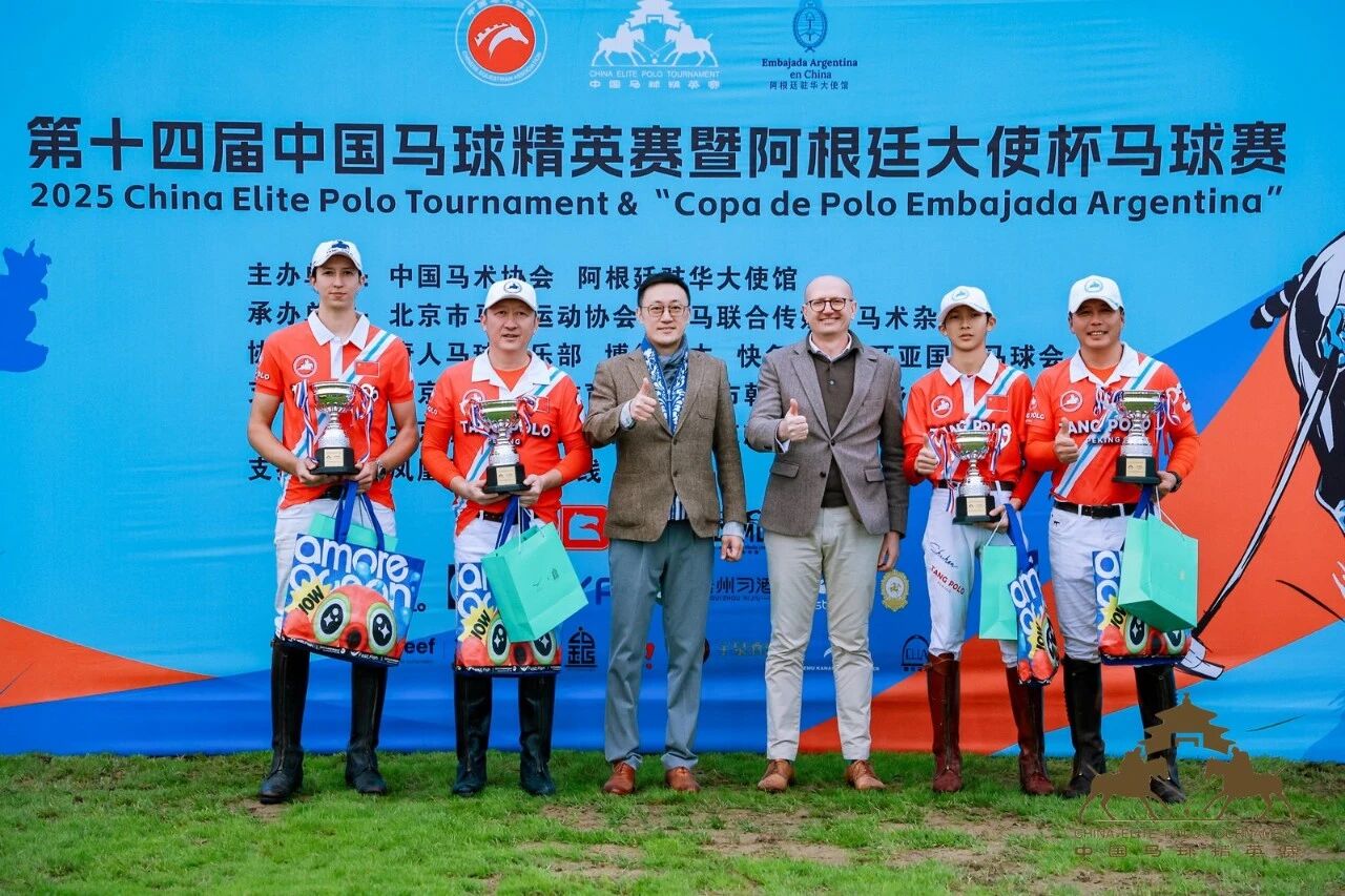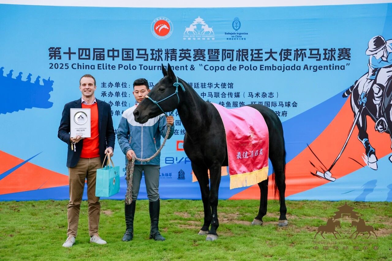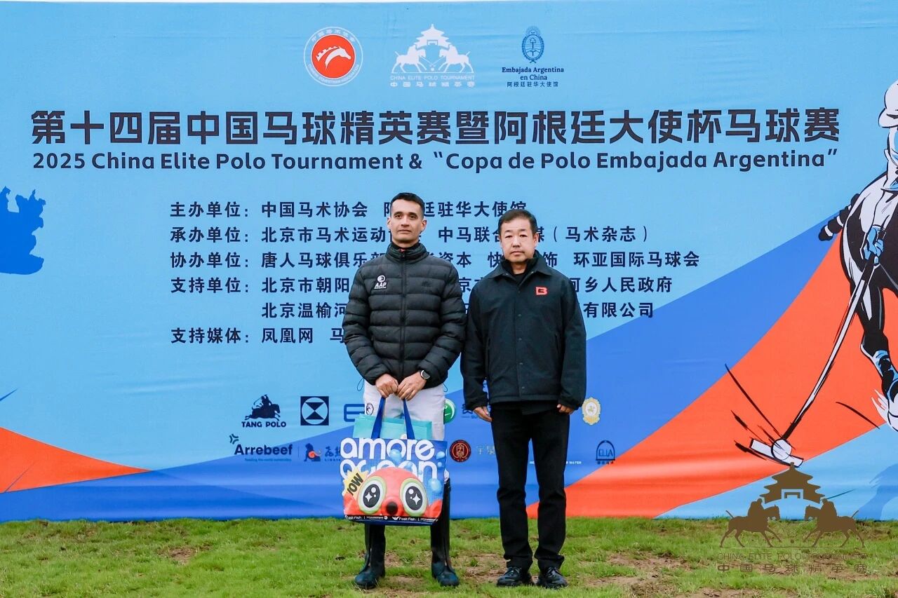 金秋十月,草色丰美,为期两天的第十四届中国马球精英赛暨阿根廷大使杯马球赛,于10月18日在地处北京温榆河公园的北京市马术运动协会马球赛事中心圆满收官。 经过两天四场比赛的角逐,最终博华队将冠军收入囊中,唐人队荣获优胜奖,天津环亚队和快鱼队获得纪念奖。唐人队的刘书瀚收获最佳新人奖项,博华队的润锴(Rooney)荣获本届比赛最佳马球手,最佳马匹奖由唐人队的马匹“Nochera”获得。 第十四届中国马球精英赛 暨阿根廷大使杯马球赛 主办单位 中国马术协会、阿根廷驻华大使馆 承办单位 北京市马术运动协会、中马联合传媒(马术杂志) 协办单位 唐人马球俱乐部、博华资本 快鱼服饰、环亚国际马球会 支持单位 北京市朝阳区体育局 北京市朝阳区孙河乡人民政府 北京朝阳文旅发展集团有限公司 北京温榆河公园 合作伙伴 利星行汽车、贵州习酒 赞助支持 宇泉酒窖、飞熊领鲜、Arre牛肉、 邯郸银瓷天成、禾木冰川水、 昭通上贝苹果汁、中国参廣裕號、驿乐马术 支持媒体 凤凰网、马术在线 赛事吸引了众多领导嘉宾莅临现场,共同见证这一激动人心的时刻。 出席的领导和嘉宾包括:阿根廷驻华大使马致远先生、国家体育总局自行车击剑运动管理中心副主任王峻燕女士、中国马术协会秘书长钟国伟先生、北京市朝阳区孙河乡党委书记张继明先生、利星行汽车业务战略及高端车部执行总监陶达利先生和贵州习酒销售有限责任公司北京区副总经理田景菊女士等。 中国马术协会秘书长钟国伟在开幕致辞中表示:2025年中国马球精英赛暨阿根廷大使杯马球赛在温榆河公园马球赛事中心举办,这既是马球运动践行“健康中国”战略、推动体育事业高质量发展的一次生动实践,也是中阿体育人文交流的一项重要活动。 这场赛事,不仅是马球运动激情与技巧的对决,更是以体育为桥、以文化为纽带的中阿交流新舞台。我们期待,中阿友谊在骏马飞驰的赛场间持续升温,在呐喊与喝彩里为两国体育人文交流写下崭新的注脚! 阿根廷驻华大使马致远在开幕致辞中表示:感谢中国马术协会对赛事的鼎力支持,特别感谢钟国伟先生、刘诗来先生、李艳阳先生和刘楠先生,他们在推广马球运动促进阿中两国友谊方面展现出远见卓识,为两国交流聚集了新的活力。 同时也感谢各国外交使团成员和众多中国朋友参加今日的盛会,诸位的到来正是马球运动所蕴含的友谊与理解精神的生动体现。 2024年12月,阿根廷马球协会与中国马术协会签署合作协议,预示着两国在马球领域合作的开始,今天我们共庆的阿根廷大使杯马球赛,不仅是一场赛事,更是通过马球促进两国文化与体育交流的桥梁。 10月18日决赛的开幕式上,四支参赛队伍从场地两侧隆重入场,由利星行汽车提供的迈巴赫GLS和G500两款车领阵。在主持人蔡猛与解说肖力的介绍下,四支球队闪亮登场并纷纷向观众致意。 本届赛事共有四支队伍参赛:唐人队、博华队、快鱼队、天津环亚队,汇聚了70后老将与90后、00后新锐球员。 唐人队由刘诗来、刘书瀚、宝音德力根(Bao Yin)和Junior组成;博华队的阵容包括徐文博、文莱王子(His Royal Highness Prince Abdul Qawi of Brunei Darussalam)、润锴(Rooney)以及费楚·费尔南多(Rafael Fernando Erreguerena)组成;快鱼队则由饶忠明、李艳阳、魏伯赞、罗德里格·布拉达(Rodrigo Bauzada)组成;天津环亚队由关昊云、曹思远、布伦别力克(Abu)、托马斯·包蒂斯塔·迪亚兹(Tomas Bautista Díaz)携手出战。 另外,本次赛事也特别邀请了来自阿根廷的国际级裁判胡安·曼努埃尔·多明格斯(Juan Manuel Dominguez)执裁,确保比赛的专业、公平与公正。 经过前一天的激烈鏖战,10月18日决赛在唐人队与博华队之间展开。随着国家体育总局自行车与击剑管理中心副主任王峻燕女士一记精彩的开球,决赛正式开始。 博华队开局发挥稳定,一路将比分打成5:4,并将优势保持到第二节结束。 唐人队也展现出了不可小觑的实力,将比分咬得很紧,一度将比分追成5比5平,但博华队最终还是以6:5赢下比赛。 央视主持人蔡猛(左)与现场解说肖力(右) 比赛的精彩间隙,观众们化身为“草坪探险家”,参与到马球观赛的独特环节“踩草坪”中。大家漫步在赛场上,一边细心地将马蹄留下的印记复原,一边在绿茵中搜寻神秘的“宝藏”——酒瓶塞,寻得者即可兑换精美奖品。 欢声笑语与掌声交织,让赛场瞬间变成一个充满惊喜的“寻宝乐园”,将这份独具仪式感的参与体验推向高潮。 比赛结束后,两位来自阿根廷的高乔人策马入场,挥舞着中阿两国国旗,伴随着热情洋溢的阿根廷音乐骑马入场,向观众朋友们展现了高超的驯马技术。他们与马匹的默契配合赢得场边观众阵阵掌声,将现场氛围推向高潮。 颁奖仪式 裁判纪念奖 胡安·曼努埃尔·多明格斯(Juan Manuel Dominguez) 颁奖嘉宾:北京市马术运动协会秘书长 刘楠先生 参赛纪念奖 快鱼队和天津环亚队 颁奖嘉宾:北京市马术运动协会秘书长 刘楠先生和贵州习酒销售有限责任公司北京区副总经理 田景菊女士 优胜奖 唐人队 颁奖嘉宾:中国马术协会发展部部长 侯天博先生和利星行汽车业务战略及高端车部执行总监 陶达利先生 最佳马匹奖 唐人队马匹 “Nochera” 颁奖嘉宾:阿根廷驻华大使馆政务三秘 孔旺烨 (Homero Koncurat)先生 最佳新人奖 唐人队 刘书翰 颁奖嘉宾:《马术》杂志主编 李艳阳先生 最佳马球手 博华队 润