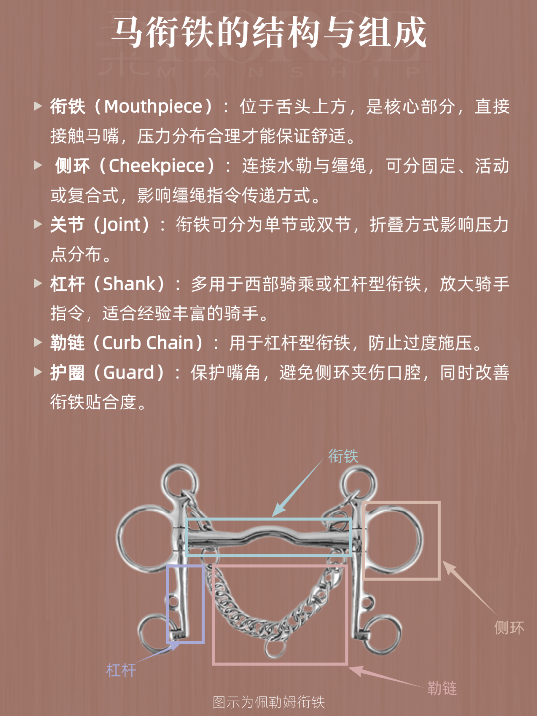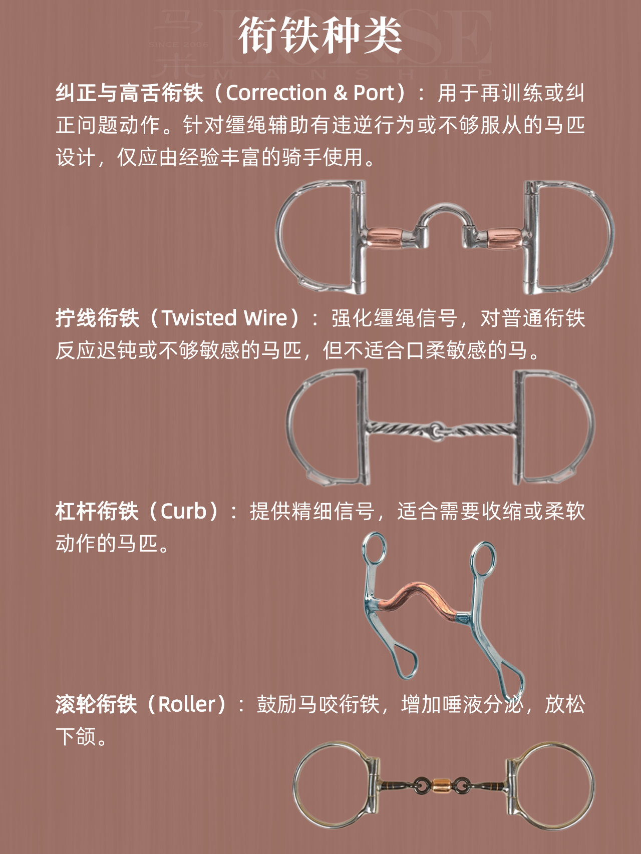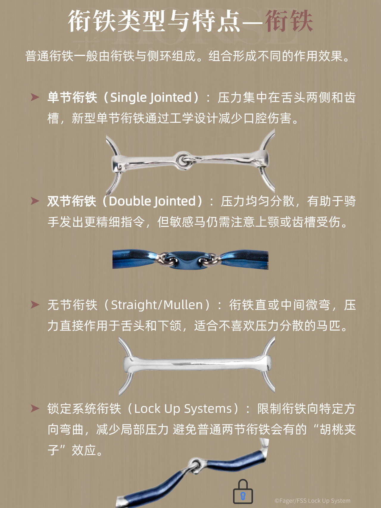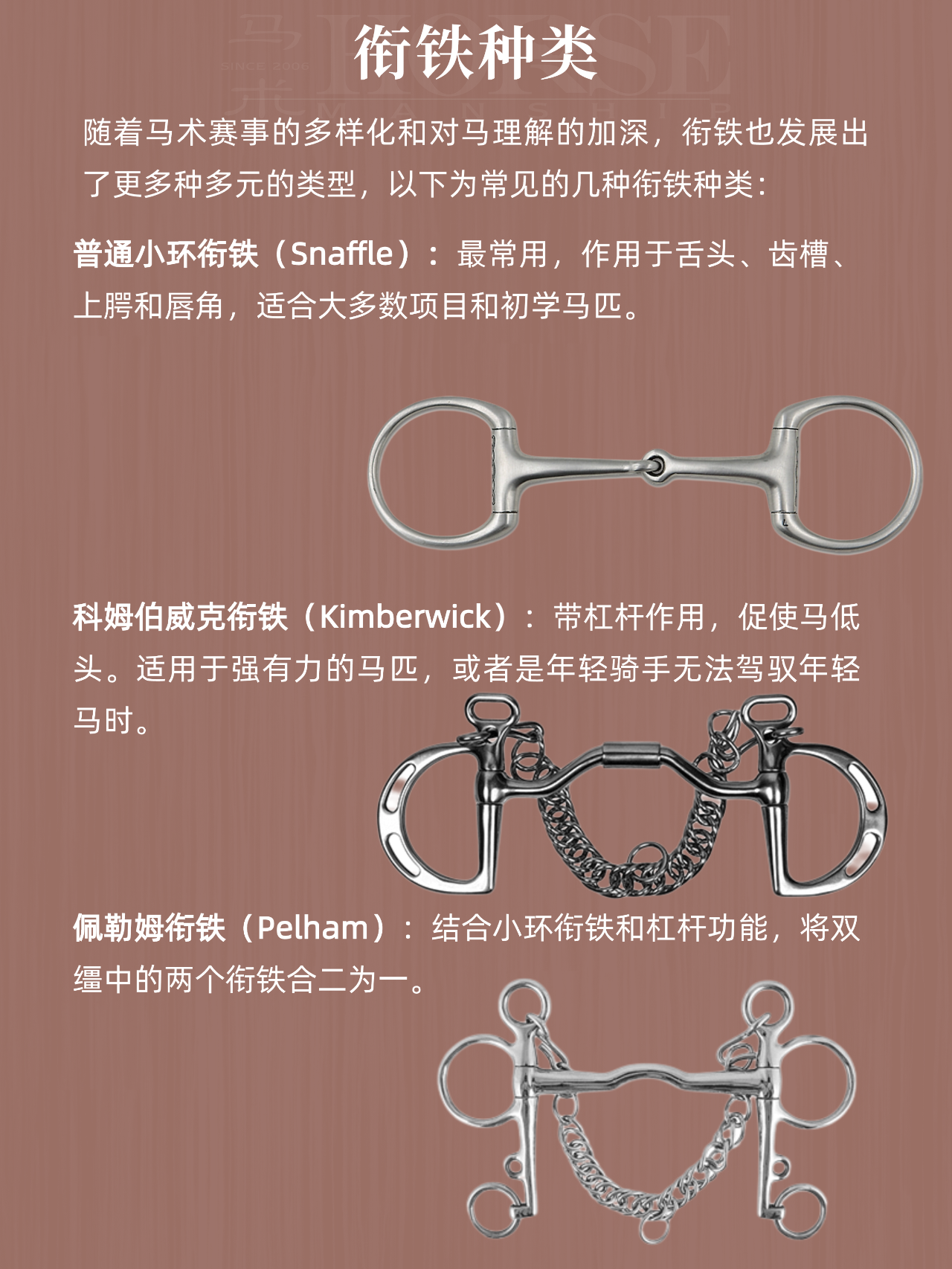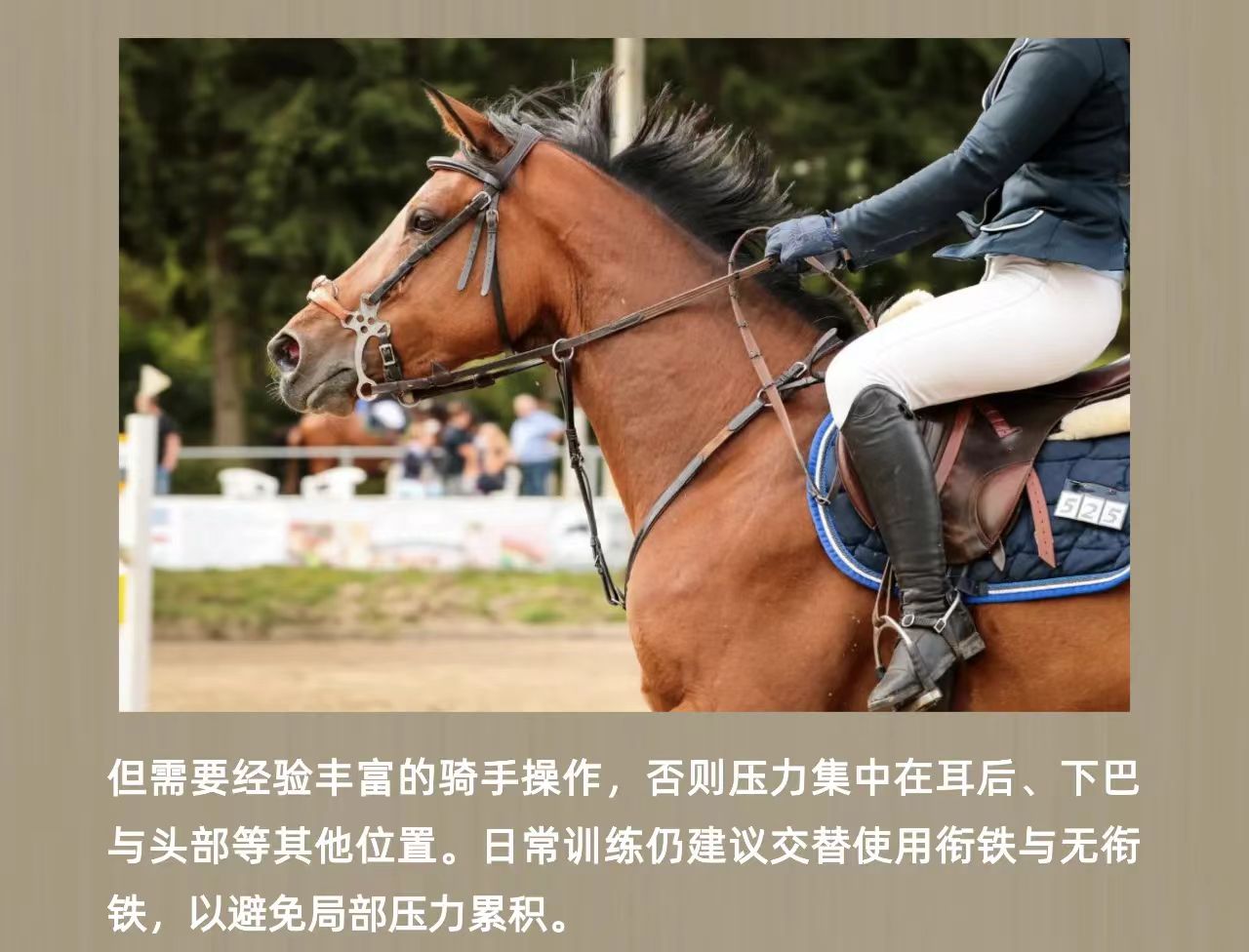 “什么才是最适合我家马的衔铁?” 很高兴你提出这个问题!衔铁的选择不仅影响骑乘的效果,更关乎马的口腔健康、身体舒适度与训练质量。要找到答案,需要综合考虑马匹的个体情况、口腔与身体结构、整体体态、训练水平,以及骑手的手法和缰绳使用方式。 在骑乘中,衔铁是马具的重要组成部分,通过缰绳与水勒相连,放置在马口内齿槽之外、无牙齿的部位。通过舌头和上腭传递骑手指令,帮助控制速度与方向。合适的衔铁能提升马匹舒适度和动作表现,而错误的选择则可能引起口腔及全身肌肉紧张,甚至导致行为问题。 合适的衔铁不是“万能款”,它是马匹口腔结构、身体状况、训练需求与骑手手法的综合结果。选择和调整衔铁时,需关注马口舒适、观察动作变化,并根据实际情况不断优化。适配的衔铁不仅能让马匹更舒适,动作更顺畅,也让骑手与马匹之间的沟通更精准和谐。 |