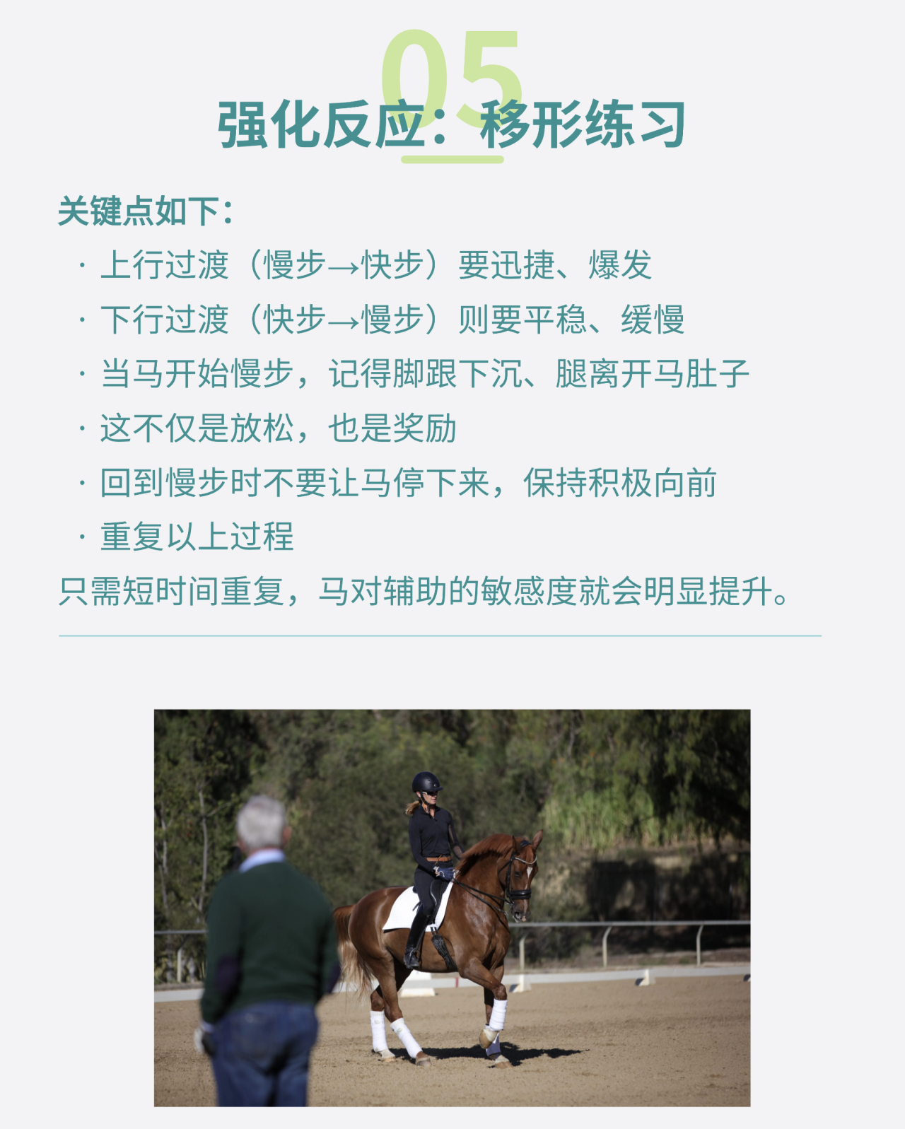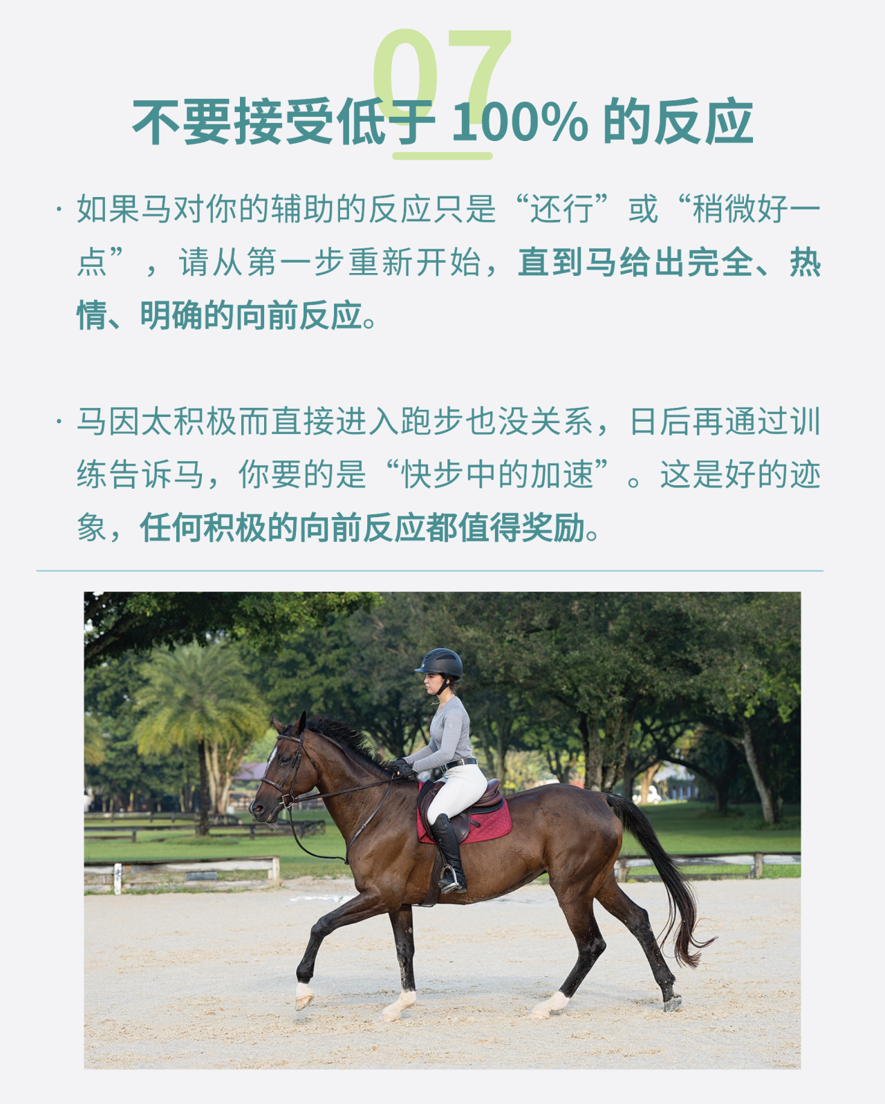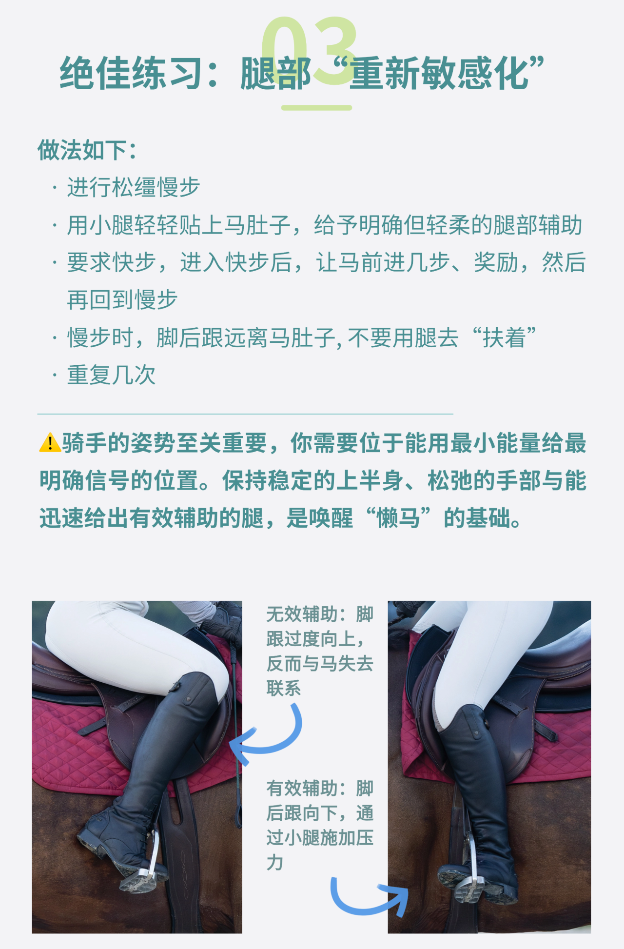 你是否常觉得自己拼命想让马“向前”,而你的马却步伐慢吞吞、反应懒洋洋?事实上,马天生并不懒,它们非常敏感,就连苍蝇落在身上都能感受到。所以对骑手的辅助(Aid)迟钝并非天性,而是训练中逐渐形成的习惯。通过正确的方法,你完全可以重新唤醒马对辅助的敏感性。 唤醒马,也是在唤醒骑手的训练思维。通过让辅助更清晰、奖励更及时,你不仅能让马重新敏感、有动力,也能让整个骑乘过程变得轻松愉快。训练目标不是“让马变快”,而是 让马愿意回应你。 |