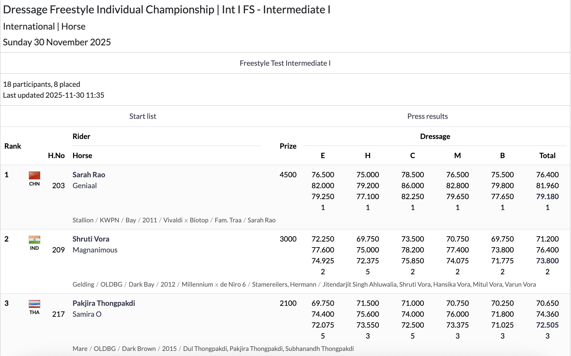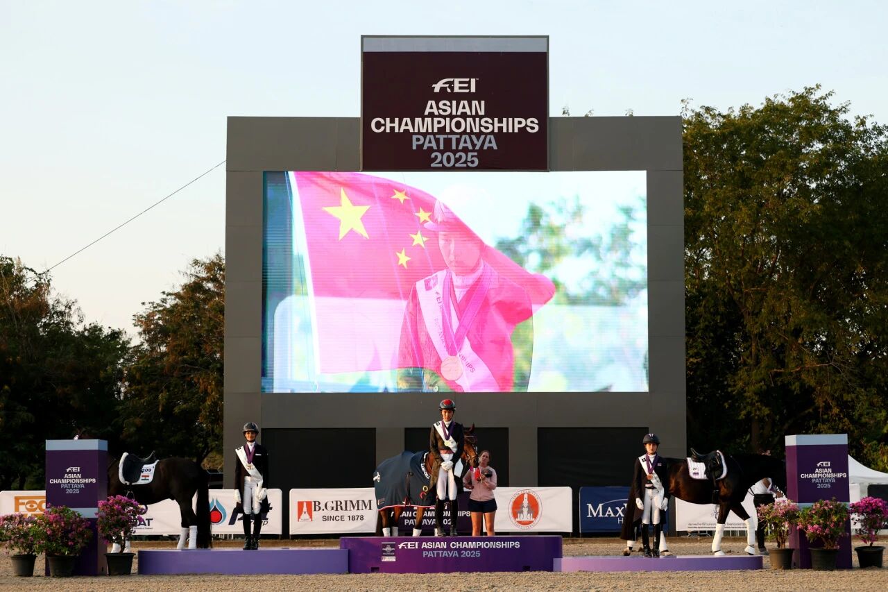 11月30日,泰国芭提雅亚锦赛盛装舞步赛场传来振奋人心的捷报:中国骑手饶嘉怡搭档 “木法沙(Geniaal)”,在第一中级自由演绎(Dressage Freestyle Individual Championship | Int I FS - Intermediate I)项目中以79.180%的破纪录高分压倒性夺冠,斩获个人本届亚锦赛第三枚金牌,同时刷新该项目亚锦赛历史纪录,用实力书写中国盛装舞步的全新篇章。 赛后,马术在线团队第一时间对饶嘉怡进行了独家专访。 2025亚锦赛第一中级自由演绎成绩公示(前三名) 打破亚锦赛记录 中国国歌再次响起 ) 01 回顾本届亚锦赛征程,饶嘉怡的夺冠之路既彰显实力,更充满突破。11月25日的圣乔治比赛中,她凭借精准的动作完成度与默契的人马配合,以71.382%的成绩登顶全场;27日第一中级再战,她延续高光表现,以73.794%的优势分数成功卫冕;而30日的自由演绎赛场,她更是突破自我,将得分飙升至79.180%,一举打破亚锦赛尘封纪录。 “其实来之前心里并没有十足把握,毕竟自己心性还年轻,面对的都是长期在欧洲训练的顶尖对手。” 饶嘉怡坦言。“第一天大概发挥出了80%的实力,第二天提升到90%,连续夺冠后,第三天的压力反而成倍增长。” 为了缓解紧张的情绪,她赛前一晚反复聆听比赛音乐,上马前一小时,甚至跑到马房旁的草地上静躺片刻。最终,她交出了职业生涯中最满意的一次自由演绎答卷。 当看到79.180%的得分时,这位年轻骑手难掩激动:“那一刻脑子里只有一个念头——我做到了!我们中国人可以的!” 她动情地说,“或许我们接触马术的时间比别人晚,没有传统马术世家的积淀,但凭借日复一日的努力,中国骑手一样能站上最高领奖台!” 马、教练、 家人和朋友 ) 02 “木法沙”是一匹很棒的马,也是一匹很容易紧张的马,很多时候一缠上护腿就会开始紧张,所以饶嘉怡需要自己保持冷静,这样才能让它的心态平稳一些。“今天我全程都没有催马,每个动作都是很好地准备、很好地结束,再开始下一个动作,走得很稳,我觉得非常满意。” 教练 Richard Davis 全程见证了她的成长,在他看来,这次亚锦赛夺冠是饶嘉怡职业生涯的重要里程碑:“这里汇聚了欧洲训练的顶尖骑手和马匹,能在这样的竞争环境中顶住压力,保持最佳状态,对她而言是极好的磨练。” 而家人与朋友的陪伴,则为饶嘉怡注入了温暖的力量。常年在欧洲训练参赛的她,很少能有家人现场助威,而本届亚锦赛让几乎所有家人都齐聚泰国赛场。 此外,几位好友特意从英国飞抵赛场,陪她度过赛前的紧张时刻,共享夺冠的荣耀。“人这一辈子,有三五个这样的好朋友就足够了。” 饶嘉怡笑着说,这份真挚的情谊让她在异国他乡倍感温暖。 尽自己的力量 将中国文化展现给世界 ) 03 在赛场上,饶嘉怡的 “中国元素” 格外引人注目。头盔和靴子上醒目的中国国旗,时刻彰显着她的身份认同:“无论比赛大小,我都要让所有人知道,我是中国骑手。” 11月27日盛装舞步第一中级个人赛颁奖现场 她在自由演绎中使用的音乐为现象级国产3A游戏《黑神话:悟空》的主题音乐,随着故事线的紧凑发展,她根据音乐的起承转合进行精心设计,对应马术盛装舞步的动作。 “国外很多人对中国音乐的印象还停留在安静古典的风格,我想通过这次比赛告诉大家,中国音乐也可以如此慷慨激昂。这次,我把中国的音乐带来亚洲的赛场,未来,我会把中国的音乐带到欧洲的赛场,甚至世界的赛场上,告诉他们,中国文化,很行!中国骑手,很行!”饶嘉怡眼眶微红,语气坚定。 “我为自己自豪,更为中国自豪。相信在我之后,中国一定会有更多优秀的骑手,把国旗和国歌带到更远的地方。”每每谈起成就,她永远不会只说“我”。 这位身着中国非遗香云纱燕尾服,配着国产3A游戏主题音乐登场的中国盛装舞步骑手,在最高领奖台上,让所有人看到了中国文化的力量。 这不仅是文化自信,也是无数个日夜训练、汗水与坚持凝结而成的底气。 11月27日饶嘉怡获得亚锦赛盛装舞步第一中级个人赛金牌 中国骑手正以无畏的勇气和不懈的努力,在马术这条漫长道路上奋勇前行。他们用实力打破偏见,用热爱传递文化,让中国马术在国际赛场上绽放出越来越耀眼的光芒。 《黑神话:悟空》中一句台词,也许正能概括中国骑手在漫长的马术道路上前行的心境: 烟霞缥缈随来往, 寒暑无侵不记年。 怕甚么山高路险, 自往前。 文/刘桐溪 图/受访者、Thailand Equestrian Federation |