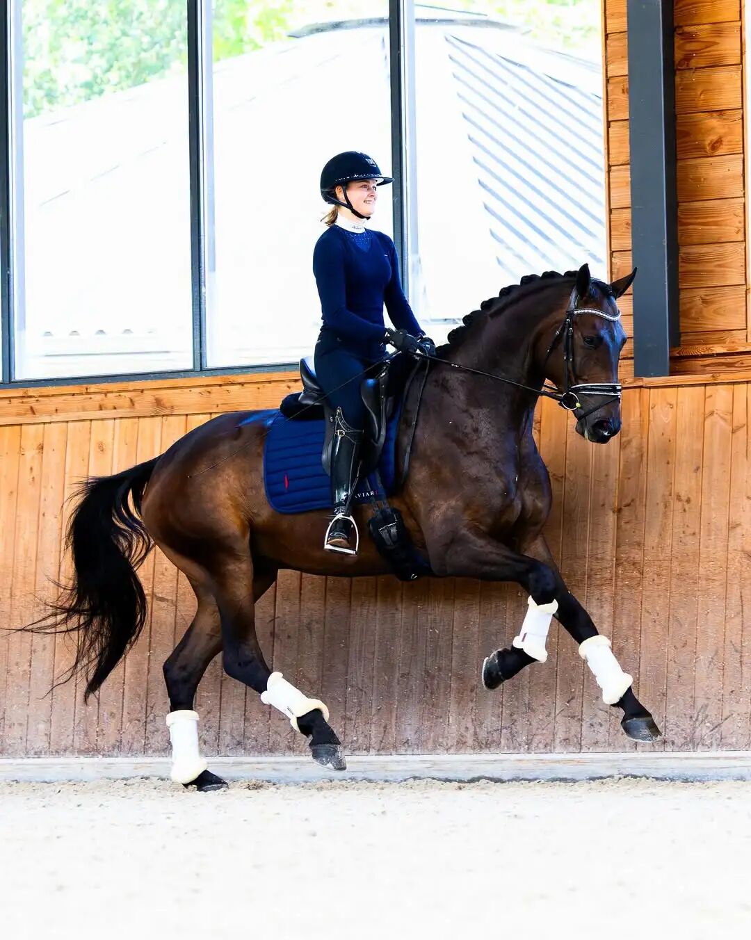 在骑乘辅助这件事上,很多人首先想到的是缰绳、腿,甚至马刺和鞭子,但其实最持续的沟通通道并不是缰绳,而是你的骨盆与坐骨。 只要你坐在马鞍上,就在不断向马传递信息。关键不在于“有没有给辅助”,而是你给出的信号,马能否听懂。这也就是“使用坐骨”的真正意义。 —————————————— 为什么我们必须谈“坐骨” 坐骨,是骨盆底部左右两侧的两个圆润突起,当你坐在一把硬椅子上,稍微把身体移到椅子前缘,让大腿自然垂下,用手感受臀部下方,便能清楚地感受到坐骨的位置。 坐骨就像摇椅底部的弧形支点,因此人可能坐在它的前部、中部或后部。塌腰时,你更多坐在坐骨前部;弓背时,你则落在坐骨后部。而最理想的位置,是坐在坐骨正下方最尖的支点。此时骨盆立起,脊柱回到自然中立位,你的身体才真正稳定、柔软、可控。 坐骨如何直接影响马? 当你在马鞍上坐正时,左右坐骨正好位于马背两侧的背长肌上方。所谓“激活坐骨”,就是在骨盆中找到正确的平衡位置,既支撑脊柱对称,又保持耳—肩—髋—脚跟垂直排列。在这个位置,你可以通过坐骨向马传递意图。若未找到这一点,影响的不仅是骑坐,还会妨碍你与马之间的平衡、对马动作的感知,以及辅助使用的准确性和时机。 换句话说:你的坐骨,决定了马如何理解你。 使用坐骨的前提 在真正“用坐骨骑马”之前,有几个基础不可忽略。 稳定骑姿 耳—肩—髋—脚跟在一条线上,才能平衡自己和马的重心 核心力量 强大的核心能保持平衡与稳定,并且精准控制骨盆的细微动作 独立骑坐 不依赖手找平衡,也不靠腿夹马鞍维持稳定 马鞍适配 任何让你前倾、后仰或偏移位置的马鞍,都会削弱骑坐的稳定性 能量循环 马的后肢-柔软的背部-马的嘴部-骑手的手-骑手骑坐-骑手的腿部辅助-马的后肢。当能量顺畅流动时,你才能真正通过骑坐调控它。 如何“用坐骨骑马” 使用坐骨,并不是“突然学会了一种新辅助”,而是有意识地控制骨盆的状态、节奏与重量分布。 被动骑坐,指的是你的坐骨完全顺随马的自然运动,而不试图改变任何东西。在这个阶段,你需要做到的是让坐骨始终与马鞍保持连续、柔软的接触,骨盆跟随马背的摆动而自然地前后、上下微动。不弹跳、不撞击、不刻意“压”马背,髋关节放松,像减震器一样吸收运动。 当你能够稳定顺随马的运动后,才可以开始使用主动骑坐。主动骑坐的作用是:改变步态、调整步伐的长度或高度以及重新组织平衡。 用骨盆方向,影响步伐 偏水平(前后)的骑坐:髋部更开放、允许能量向前流动、鼓励马迈出更伸长的步伐 偏垂直(上下)的骑坐:下腹轻微收紧、减少向前的能量外泄、鼓励马迈出更收缩的步伐 很多骑手会误以为“收缩”需要更用力地坐下,但真正的感觉更像是在不离鞍的情况下向上延展。在骑姿正确的前提下坐得更高,重力会自然将身体带入马鞍,使坐姿更深、更稳,同时不干扰马背的运动。 主动骑坐结束后,必须“放回去” 这是最容易被忽略、却最关键的一点。如果你在给出主动骑坐后,持续保持同样的紧张或控制,马很快就会再次感到信号混乱。正确顺序是:被动 → 主动 → 立刻回到被动。 当被动与主动骑坐都已经稳定,你才能开始使用重心辅助。重心辅助指的是通过坐骨重量的细微变化,影响马的平衡与弯曲。坐骨辅助是细微、不可见的,不是通过身体倾斜完成的。 可以通过单侧坐骨略微加重、双侧坐骨同时变深或变轻、重量在左右之间非常小幅度地流动来完成辅助,但必须牢记一个原则:重心永远放在马弯曲与屈挠的一侧,而不是简单地“往前进方向压”或“身体往里倒”。 很多骑手错误地使用重心辅助,通过上半身倾斜去改变重心,但往往是坐骨被“甩”到外侧。而马为了保持平衡,只能改变运动方式,结果完全偏离你原本的计划路线。其实就算只是极其细微的肩部移动,坐骨的受力感觉已经发生了变化。 通过拉长同侧躯干肌肉,并将少量重量导入同侧脚跟,骑手可以更清楚地感受到坐骨压力的细微变化。真正有效的重心加重,依赖的并不是身体的倾斜,而是小而精准的肌肉控制。 |