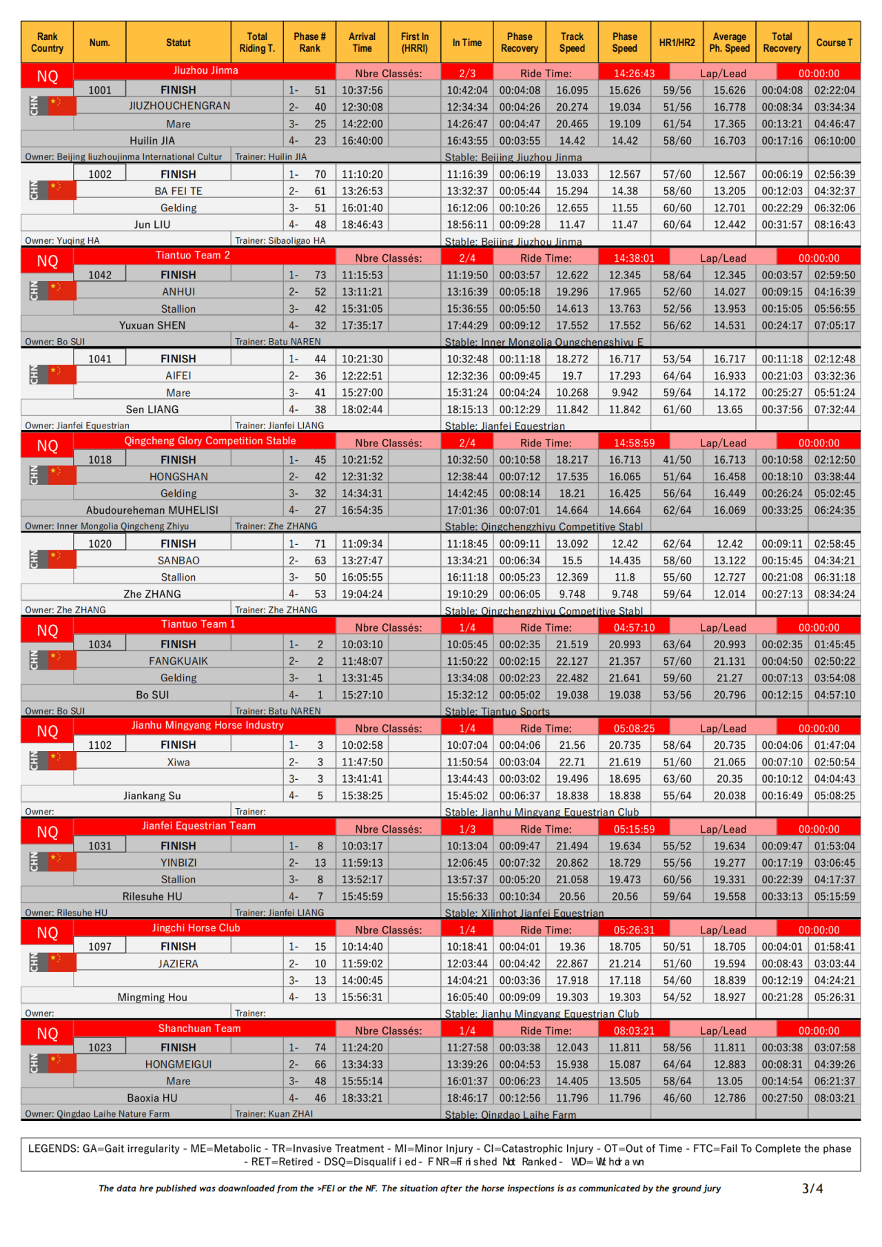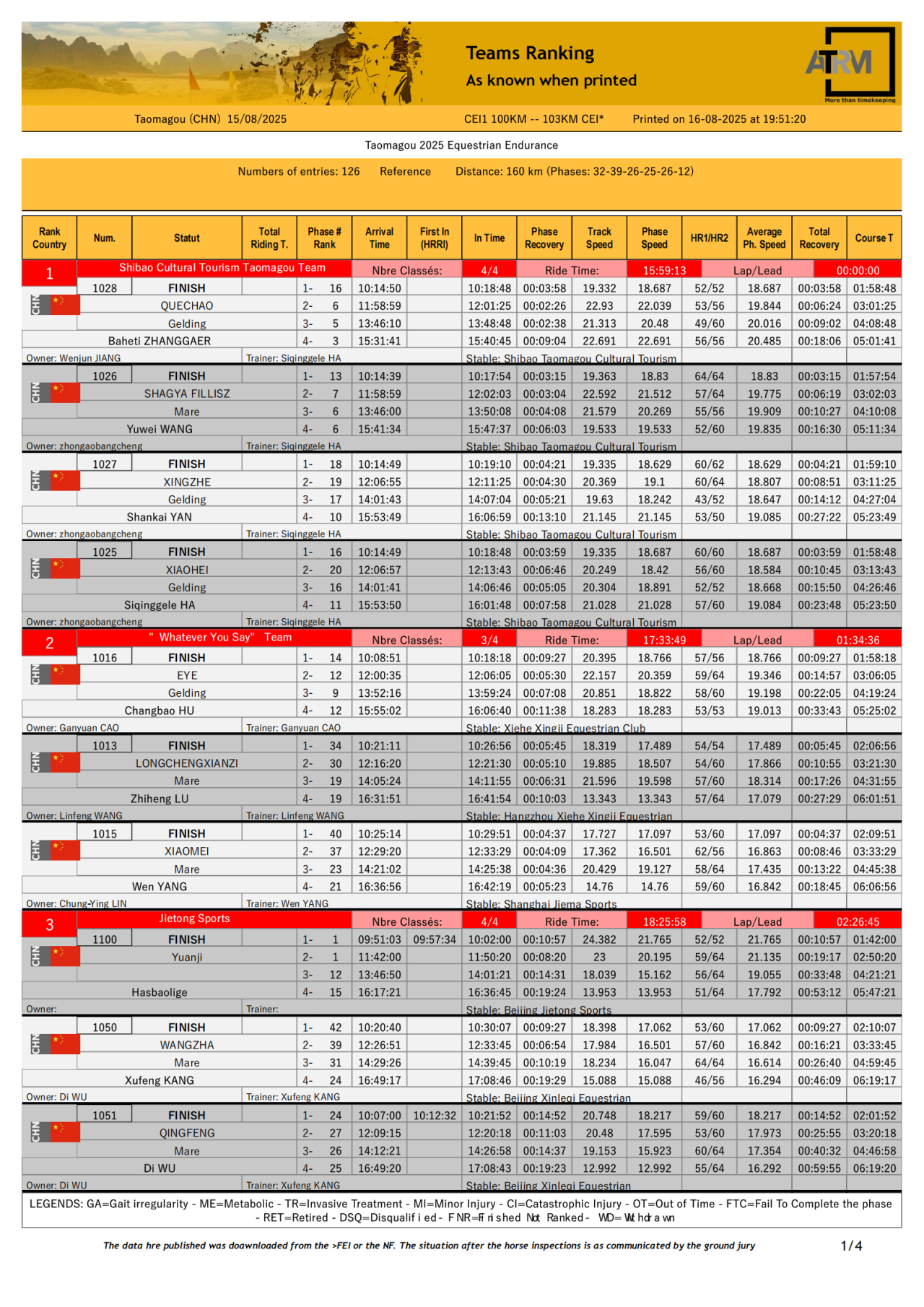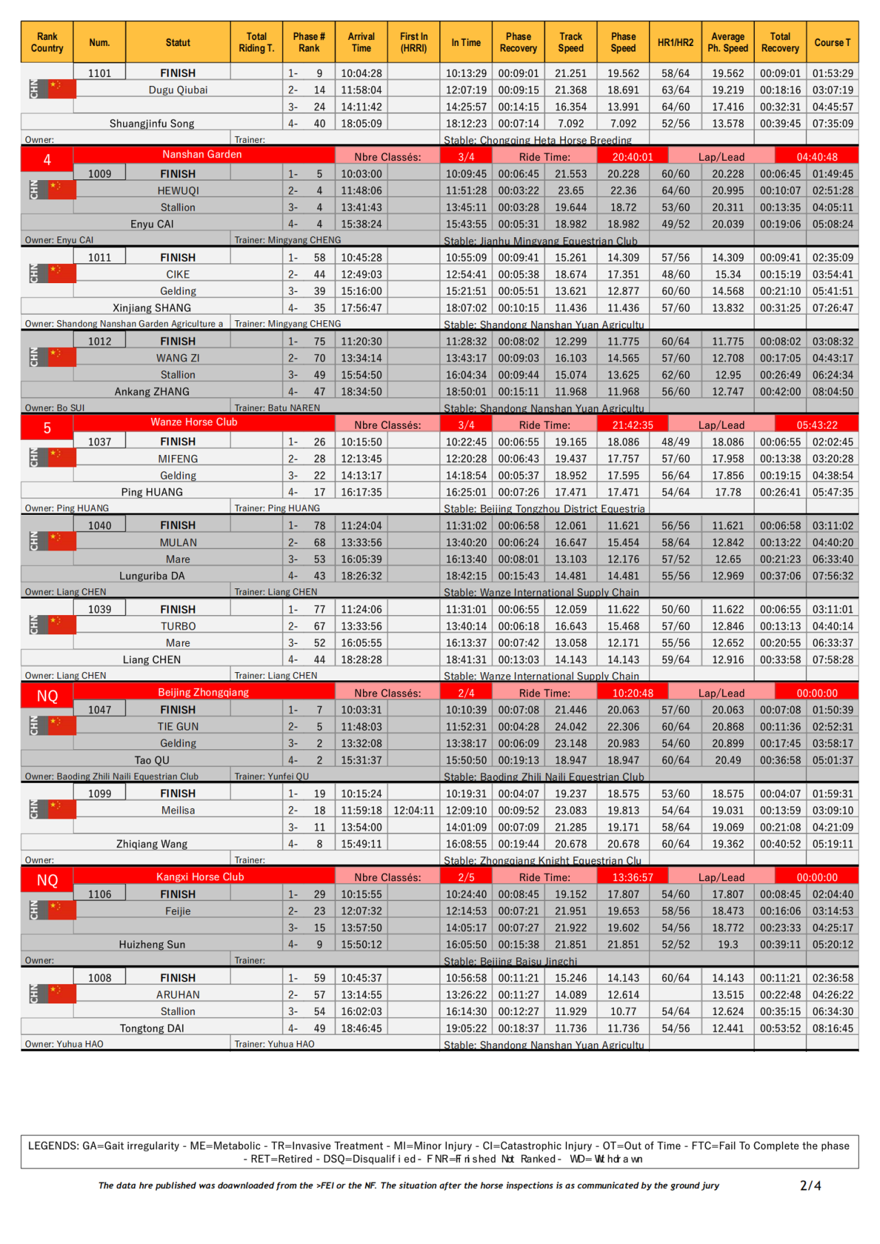 来自直隶马会的骑手瞿云飞(骑手号:2016)搭档“我来了”和来自克什克腾旗乌兰布统马会的骑手魏金昆(骑手号:2012)搭档“哈里”分别落后冠军15秒和18秒,以同样19.5km/h的平均时速获得亚军和季军。