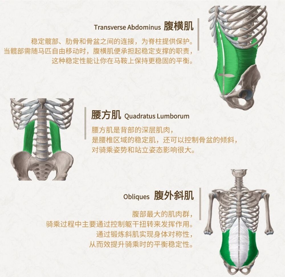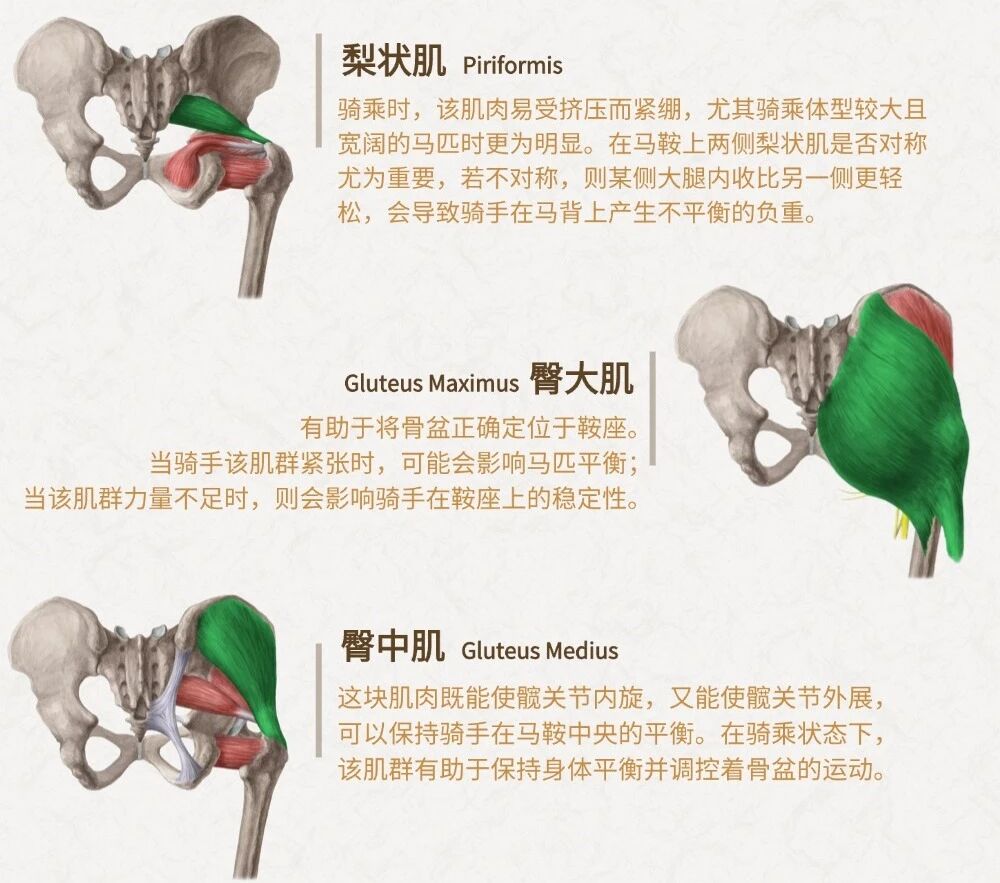 你的马就像一面镜子,如果你失去平衡、身体僵硬或动作不协调,你的马也会如此。了解骑马时主要用到的肌肉对骑手、马匹的安全与骑乘体验都至关重要。