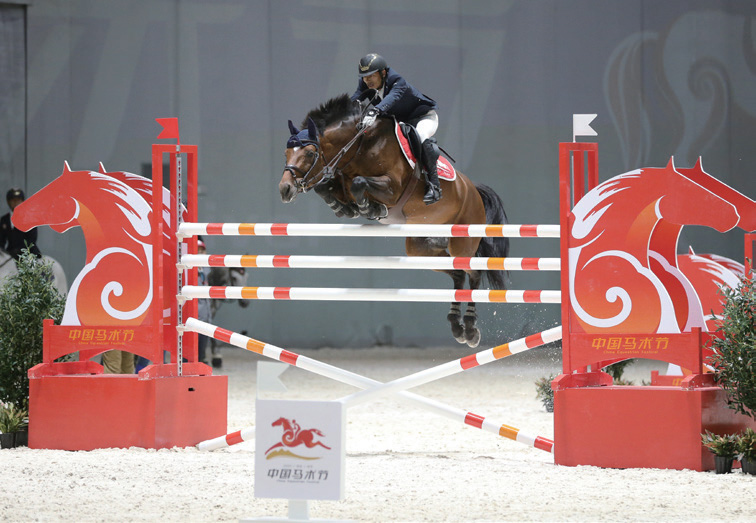 骑手张勇和他的马匹“阿姆斯壮”在第九届中国马术节开幕式上,给参加此次盛会的运动员、赛事工作人员和慕名而来的观众呈上了一份饕餮盛宴。