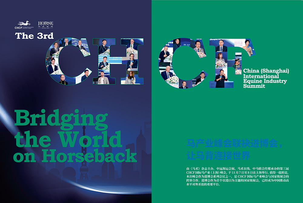 由《马术》杂志主办,中远海运会展、马术在线、中马联合传媒承办的第三届CHCF 国际马产业(上海)峰会,于 11月7日至8日在上海举行。值得一提的是,本次峰会作为进博会系列会议之一,是 CHCF 国际马产业峰会与国家级展会的跨界合作。进博会作为首个以进口为主题的国家级展会,已经成为中国推动高水平对外开放的重要平台。
